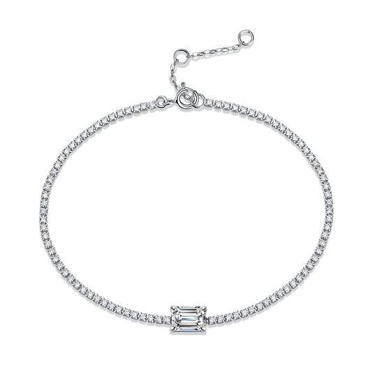 Crafted from Sterling Silver 925, this bracelet features a 1CT moissanite. Its smooth lines, paired with the precisely cut long-shaped square moissanite, showcase brilliant radiance, exuding a three-dimensional, exquisitely shiny charm. It mirrors your mood, emanating an elegant, light-luxury aura—a petite lucky token. With a simple and elegant design, it’s...