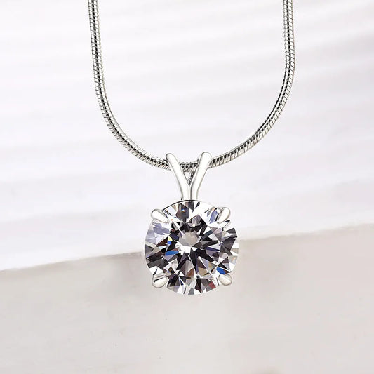 Elevate your look with a pendant necklace made for effortless elegance. A carefully cut round centerpiece around 2.5ct creates a bright, elegant look that feels elevated but wearable. Set with Moissanite, it offers a clear, diamond-like shine that photographs beautifully. Finished in white gold, it's easy to style for both...
