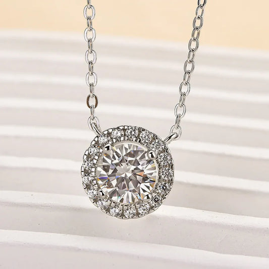 Designed to bring a subtle glow to your daily style, this pendant necklace is easy to wear and easy to love. Featuring a round cut centerpiece around 1.0ct, it catches light beautifully while keeping a clean silhouette. Finished with Moissanite, it adds a luminous touch while staying easy to style....