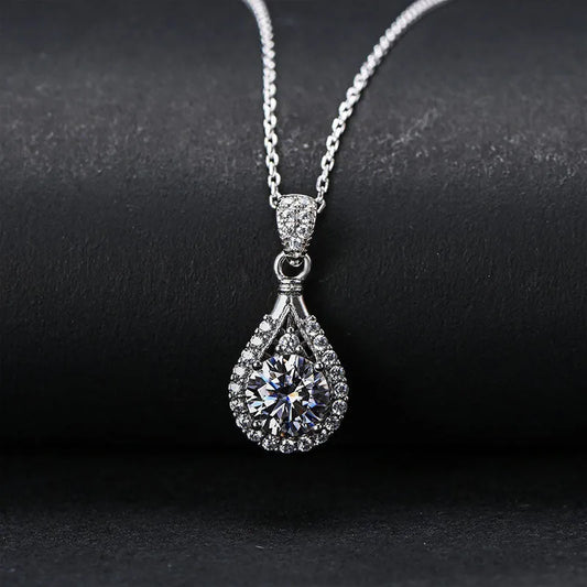 Elevate your look with a pendant necklace made for effortless elegance. Anchored by a pear cut stone near 1.5ct, the design offers balanced sparkle without feeling overstated. Set with Moissanite, it offers a clear, diamond-like shine that photographs beautifully. Finished in white gold, it's easy to style for both casual...