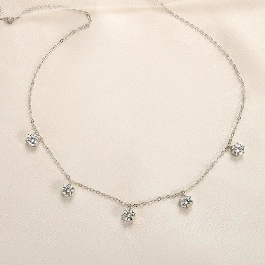 This necklace features a radiant moissanite, its brilliant sparkle gracefully framed by sleek 925 sterling silver. The stone’s fiery brilliance rivals that of diamonds, while the polished silver offers both comfort and lasting shine. Versatile for everyday wear or special occasions, it brings a touch of refined elegance to any...