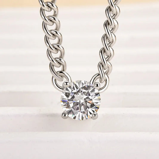 Designed to bring a subtle glow to your daily style, this pendant necklace is easy to wear and easy to love. At the center is a round cut stone of approximately 1.0ct, delivering crisp brilliance with a refined profile. Featuring Moissanite, it delivers a clean, high-end look that stays elegant...