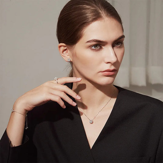 Designed to bring a subtle glow to your daily style, this pendant necklace is easy to wear and easy to love. A carefully cut round centerpiece about 3.0ct creates a bright, elegant look that feels elevated but wearable. Set with Moissanite, it offers a clear, diamond-like shine that photographs beautifully. Finished...