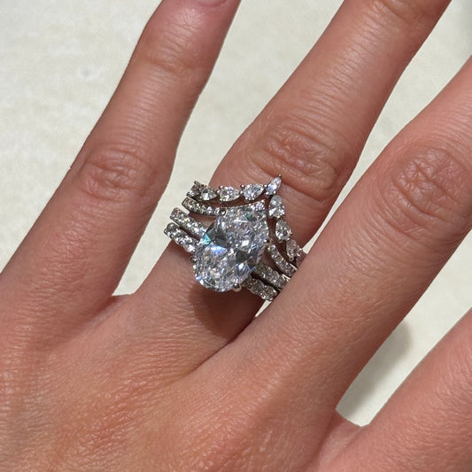 Design Inspiration: Balanced Beauty, Timeless HeartElegant, poised, and endlessly wearableIt is designed to celebrate commitment with an elevated, wearable silhouette. This wedding set is designed to feel cohesive and elevated. The centerpiece is a radiant 4.0 carat Oval cut stone, sized 12*8, designed to anchor the full set with confident...