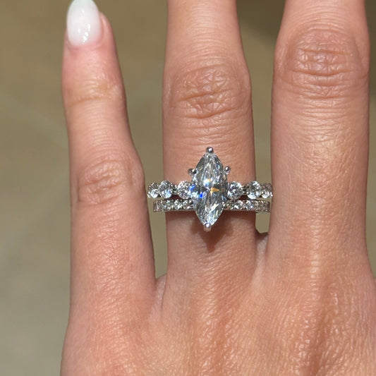 Design Inspiration: Balanced Beauty, Timeless HeartDelicate in detail, confident in presence It is designed to celebrate commitment with an elevated, wearable silhouette. This wedding set is designed to feel cohesive and elevated. Leading the look is a radiant 4.0 carat Marquise cut stone, sized 8*14, designed to anchor the full...