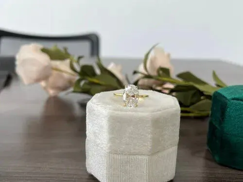 It is designed to celebrate commitment with an elevated, wearable silhouette. Leading the look is a radiant 4.0 carat Oval cut stone, sized 12*8, chosen for its crisp sparkle and elegant proportions. The design favors balance and light, drawing attention to the stone's shape and sparkle.