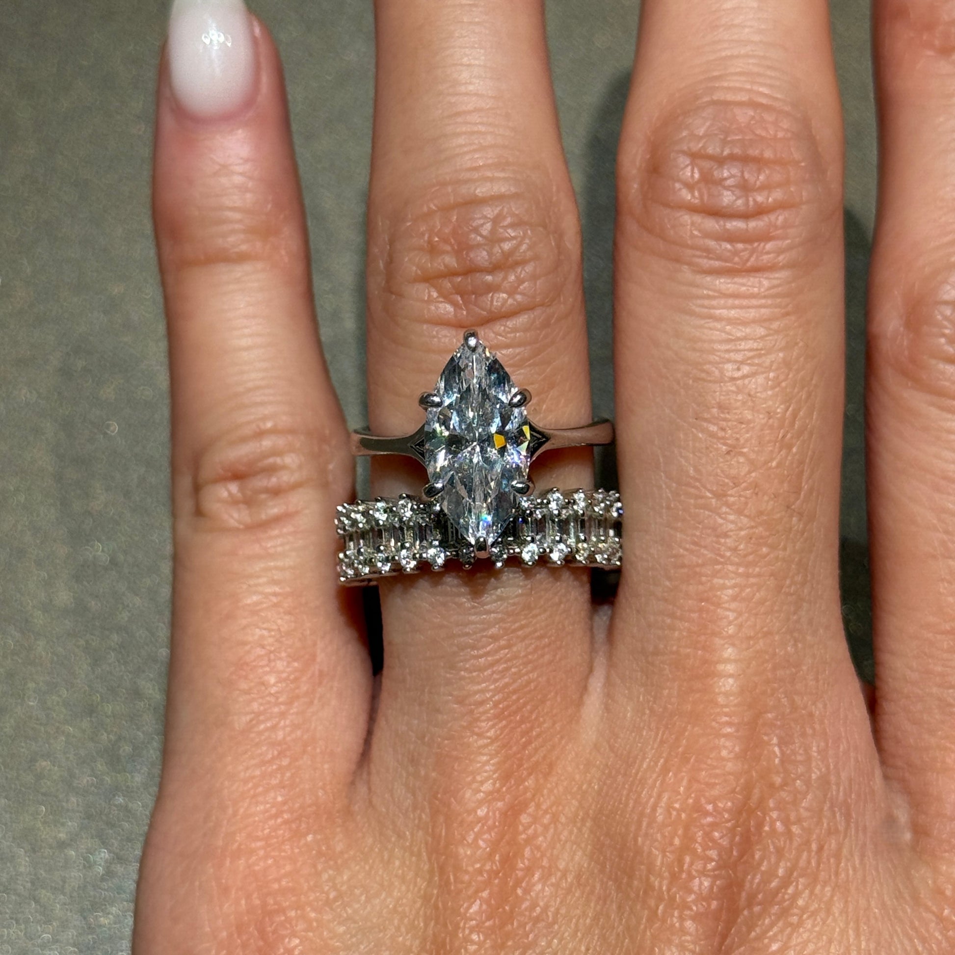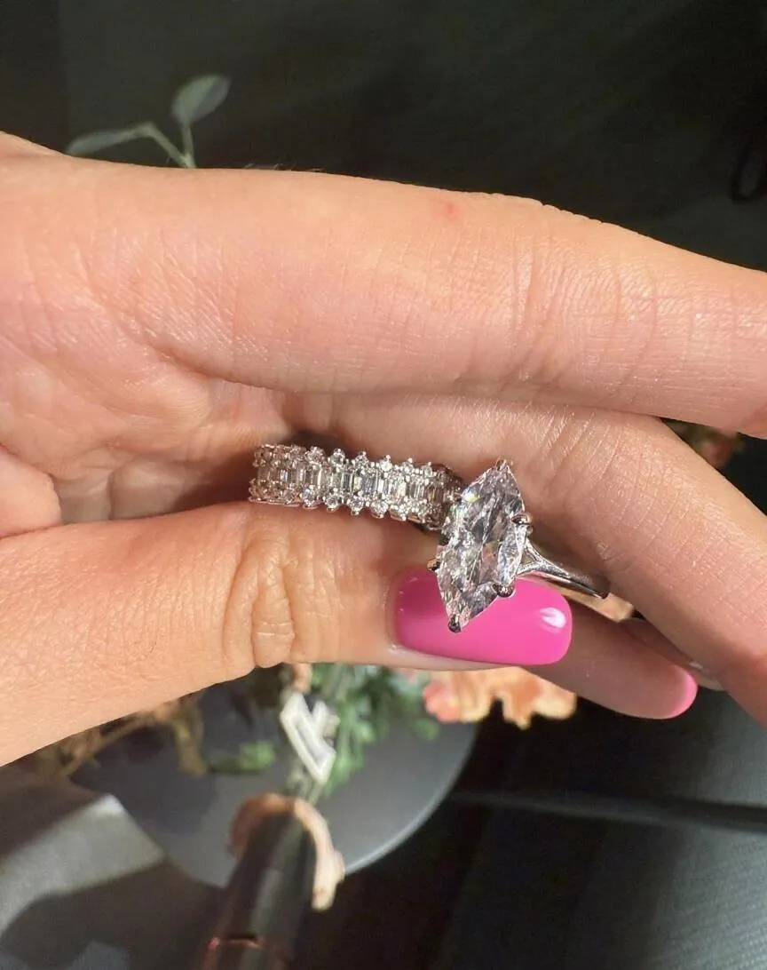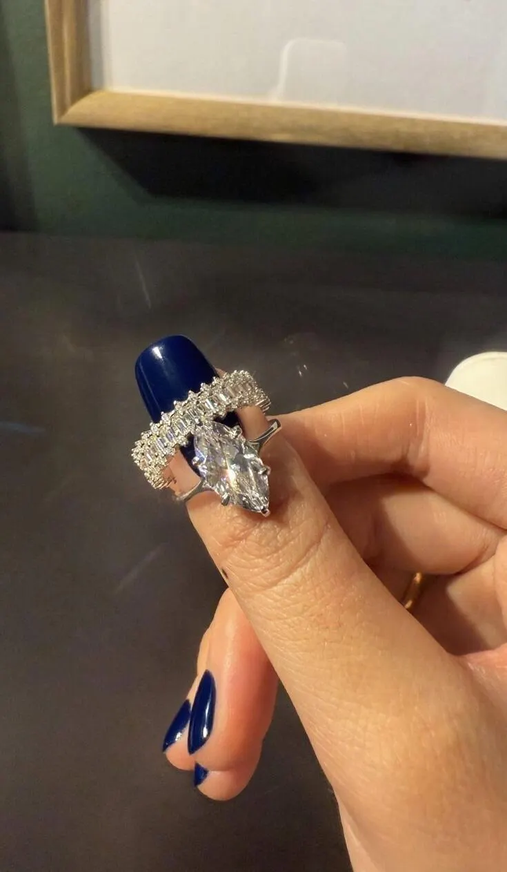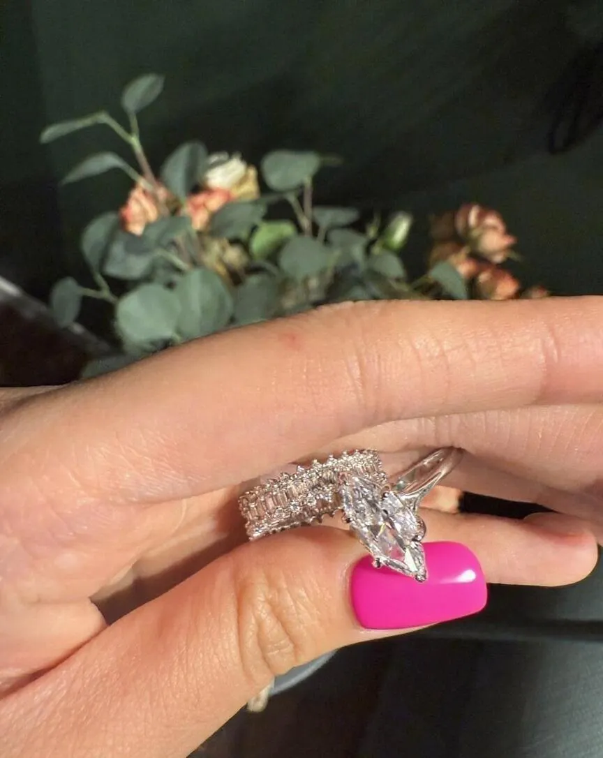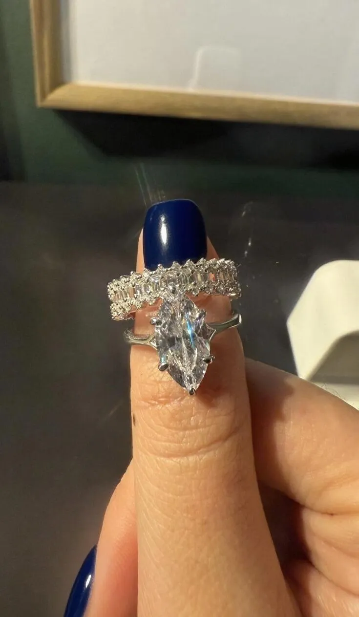 Elegant Allure 3.0 Carat Marquise Cut 3 - Piece Ring Set in Sterling Silver