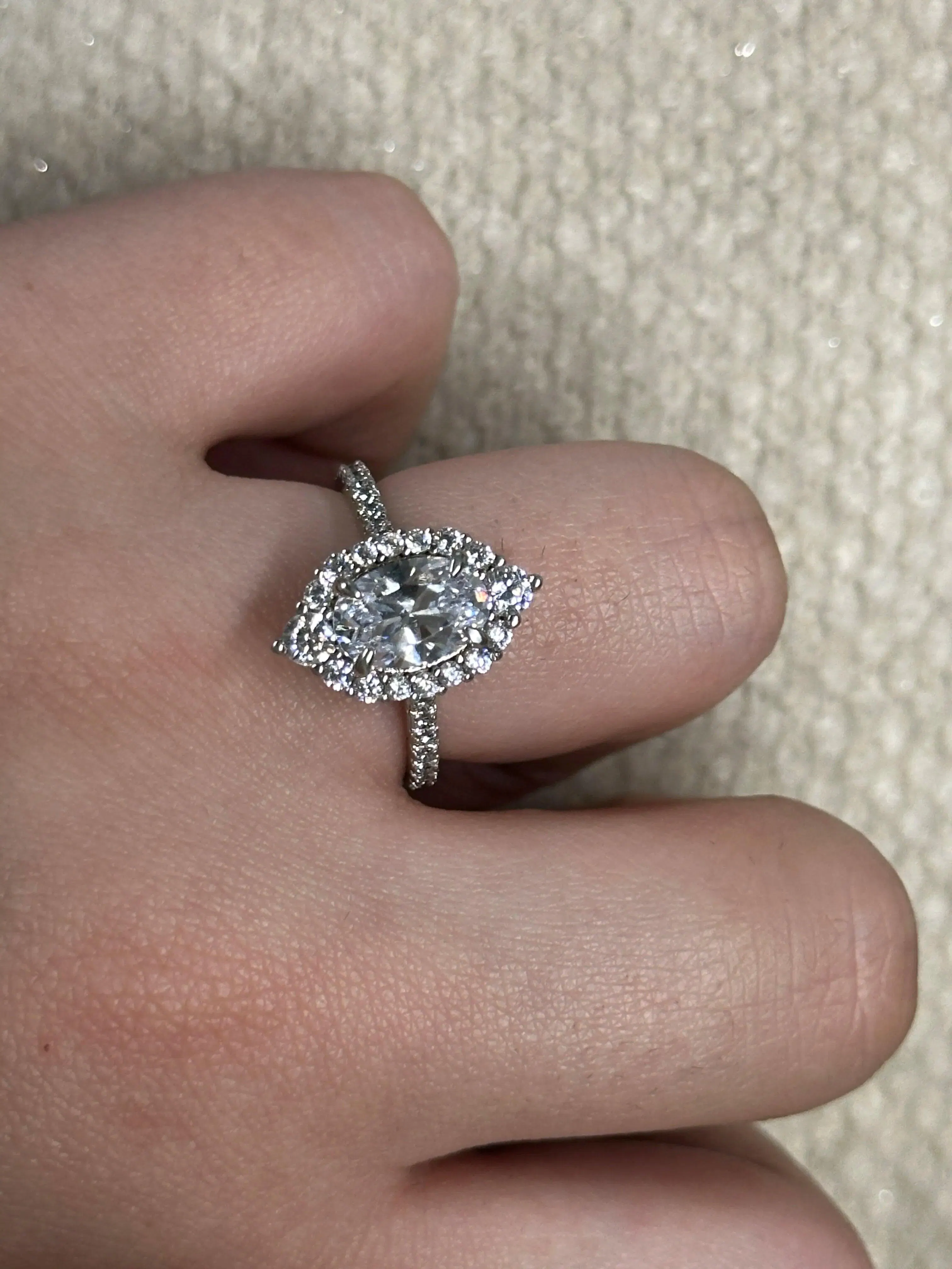 It is designed to celebrate commitment with an elevated, wearable silhouette. Leading the look is a radiant 3.5 carat Oval cut stone, sized 8*10, chosen for its crisp sparkle and elegant proportions. The design favors balance and light, drawing attention to the stone's shape and sparkle.